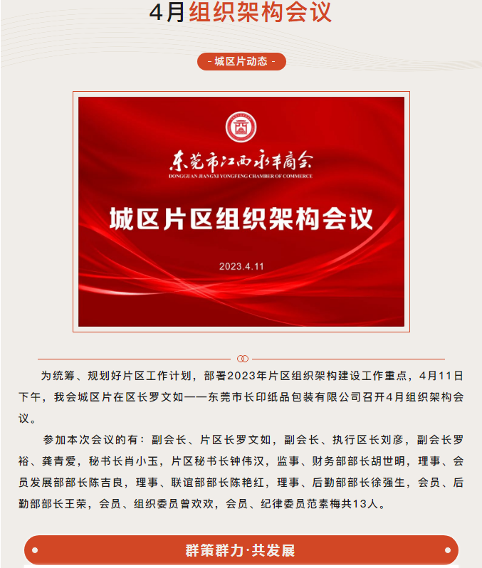 東(dōng)莞市(shì)江西永豐商會城區(qū)片區組織架構會議在東莞(wǎn)市亚洲欧美成人a∨紙品包裝有限公司營銷中心召開
